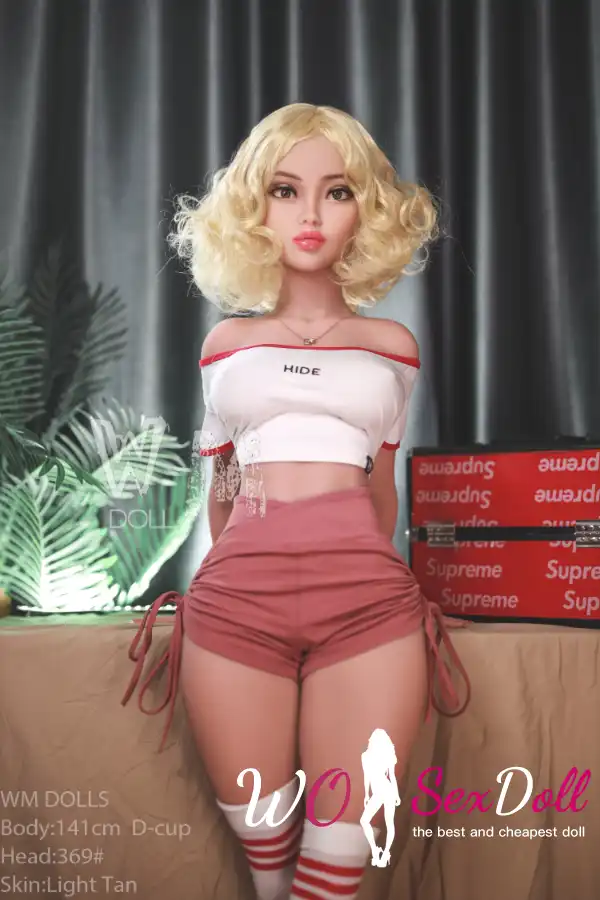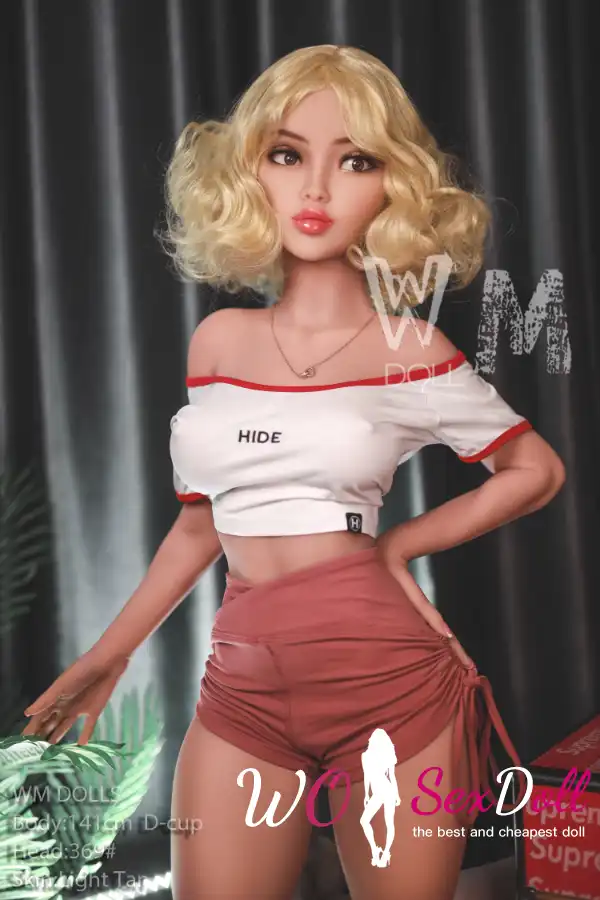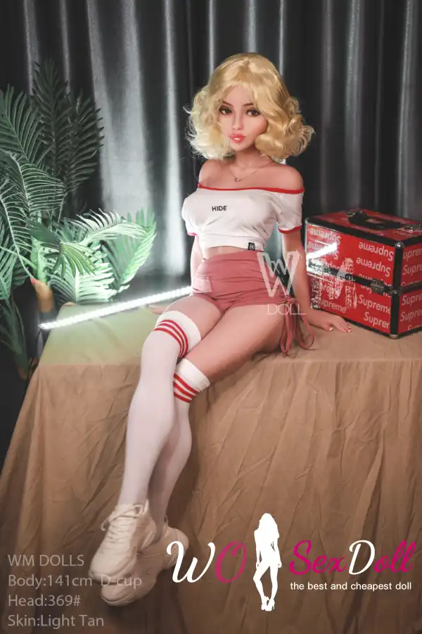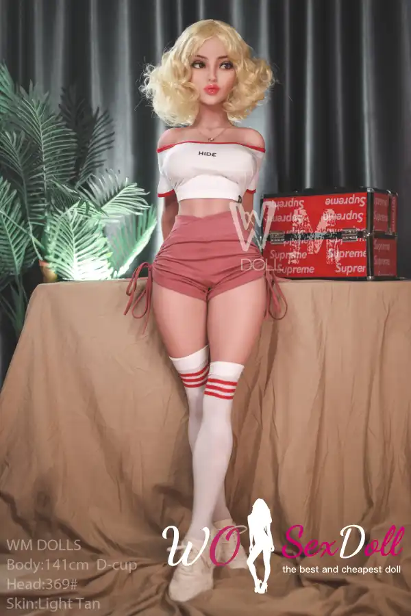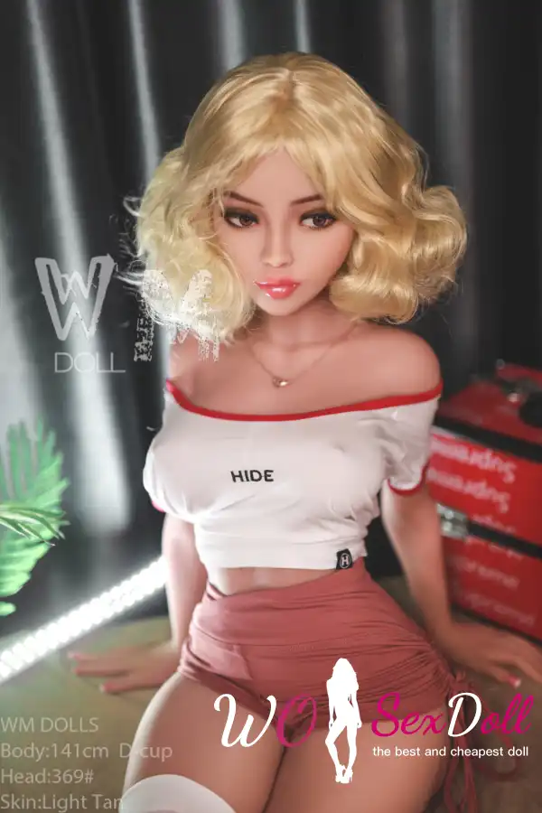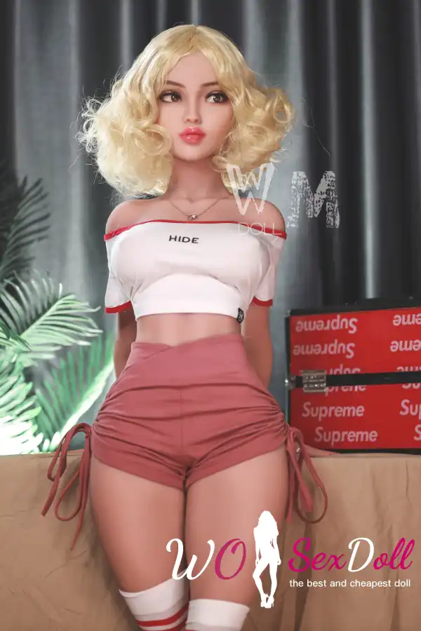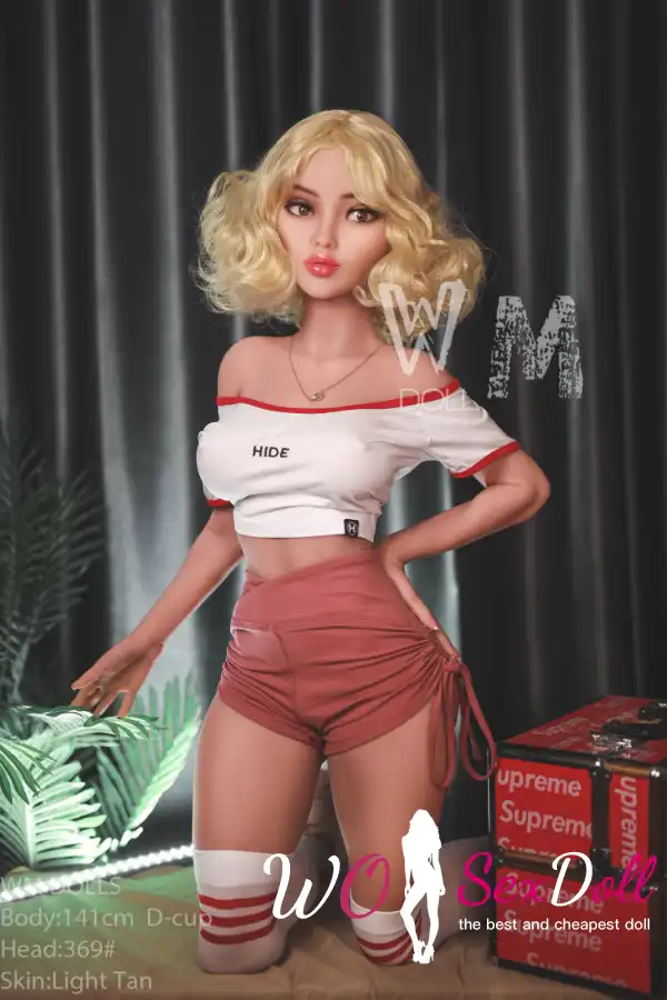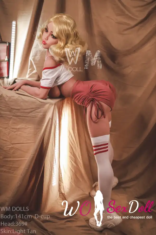 141cm 4ft6 TPE Sport Girl Ample Chest Curly Blonde Hair Sex Doll #369 Head