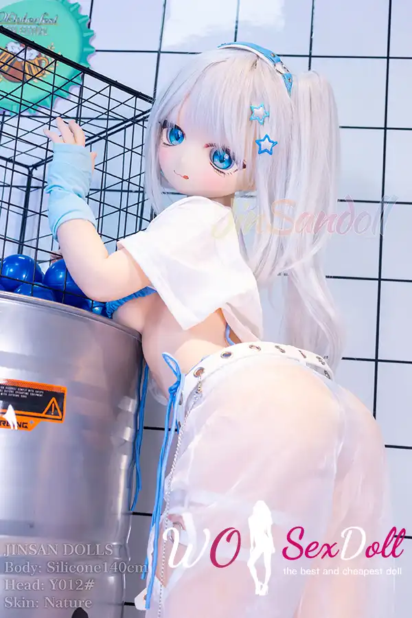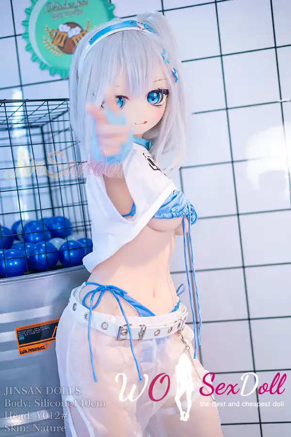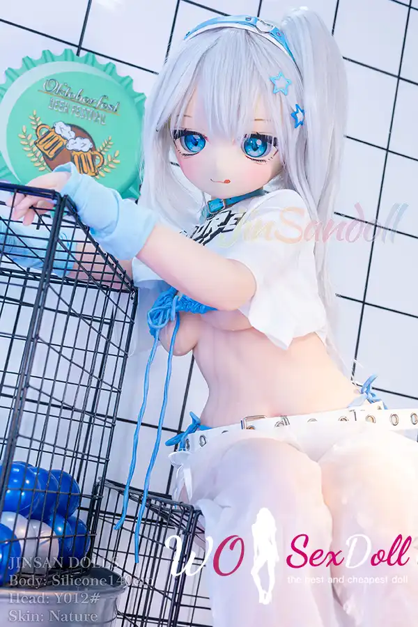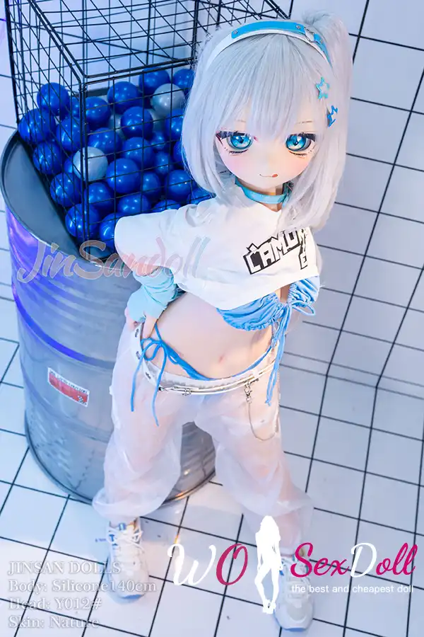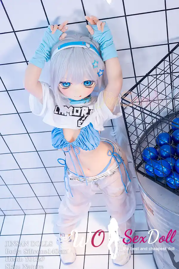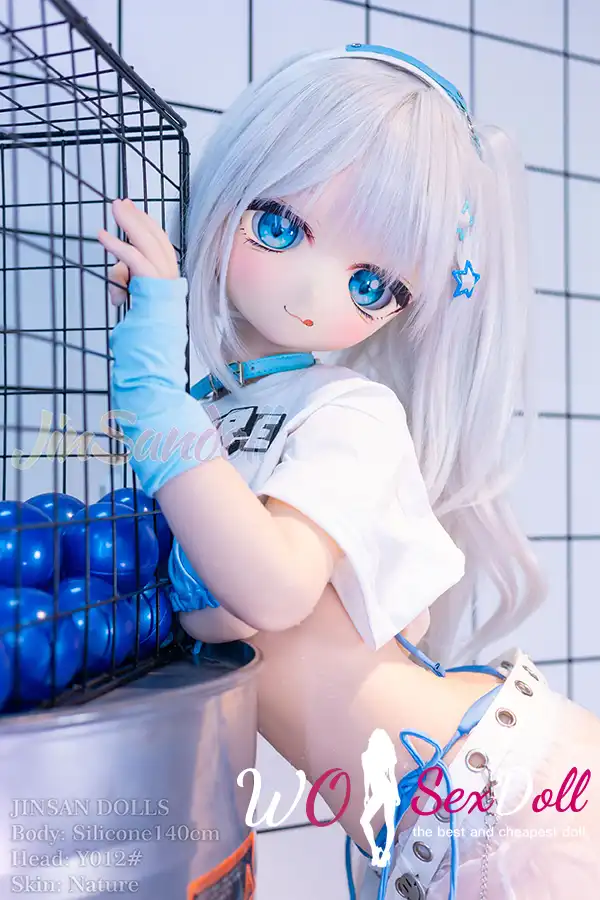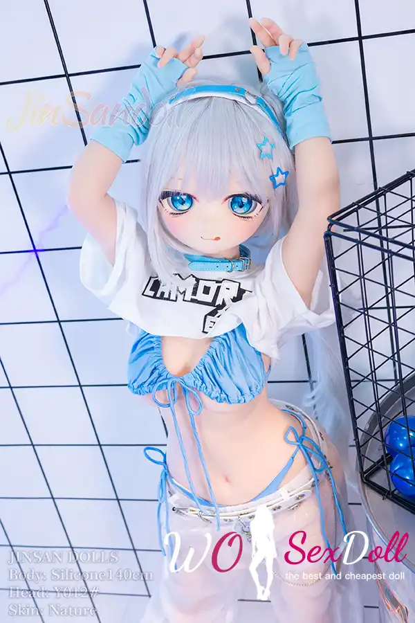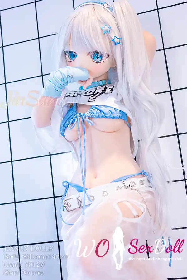 140cm 4ft6 Silicone Anime Girl Big Chest Blue Eyes Sliver Sex Doll #Y012 Head