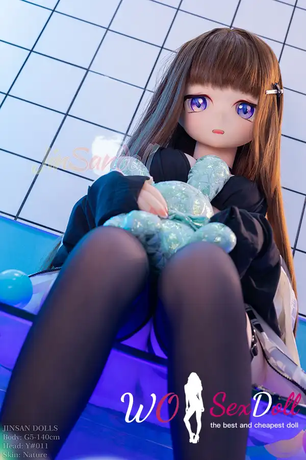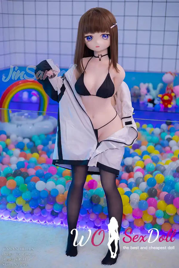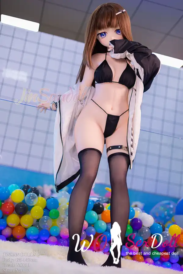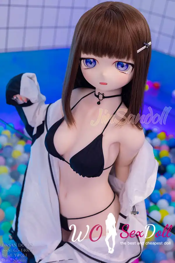 140cm 4ft6 Silicone Anime Round Chest Black Bikini Brown Sex Doll #Y011 Head