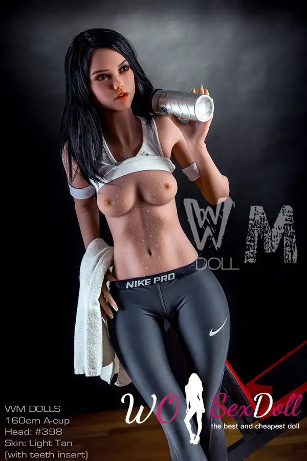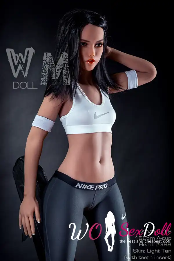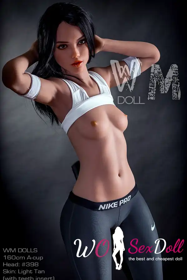 160cm 5ft2 TPE Athletic Girl A Cup Chest Toned Body Black Sex Doll #398 Head