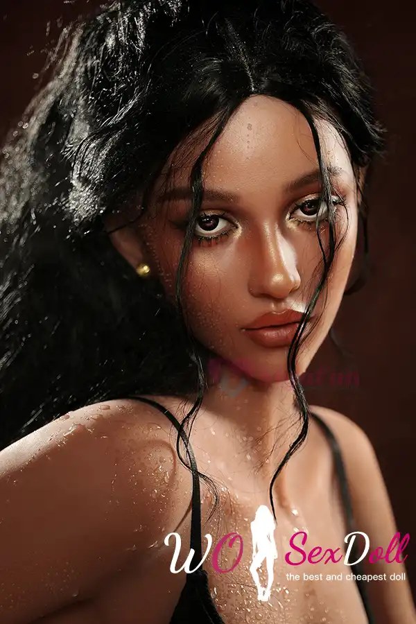 159cm 4ft9 Silicone Full Figure Dark Skin Raven Hair Sex Doll #SG5 Head in Stock (US Only)