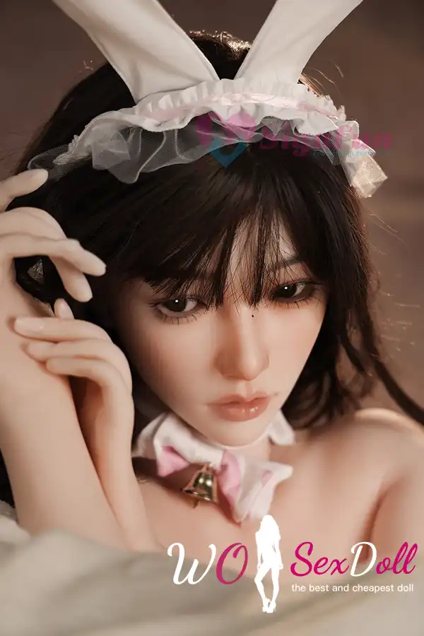 159cm 5ft2 Silicone Full Chest Bunny Ear Black Hair Sex Doll#SG6 Head
