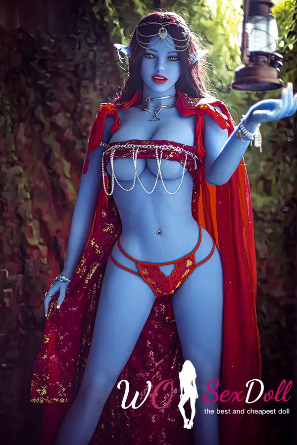 158cm 5ft2 TPE Blue Skin Elf Soft Chest Toned Figure Sex Doll #115 Head