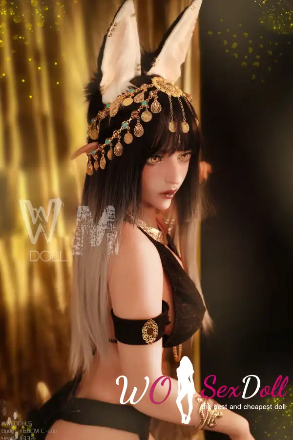 WM Dolls166cm 5ft5 TPE C Cup Black Lace Raven Hair Sex Doll #159 Head A
