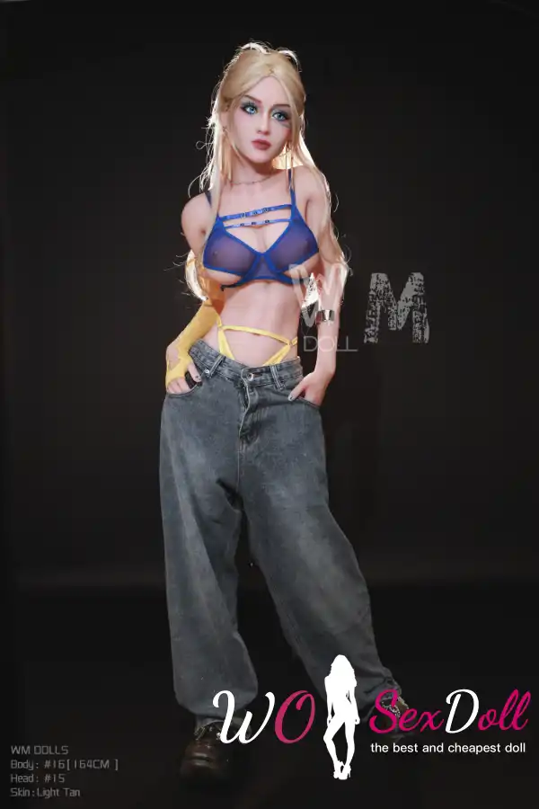 The d cup blue eyes shapely blonde hair sex doll: firm natural D-cup bust, toned athletic body with defined muscles, slim waist & subtle curves, blue eyes & flowing blonde hair for vibrant, fit sensual allure.