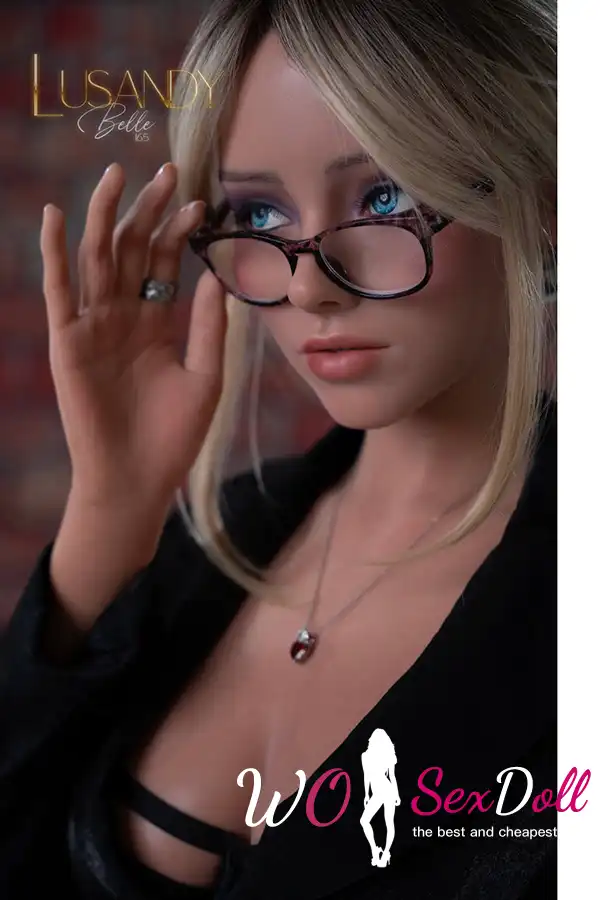 165cm 5ft4 Silicone Small Breasts Slender Blonde Sex Doll with Red Glasses #Belle C