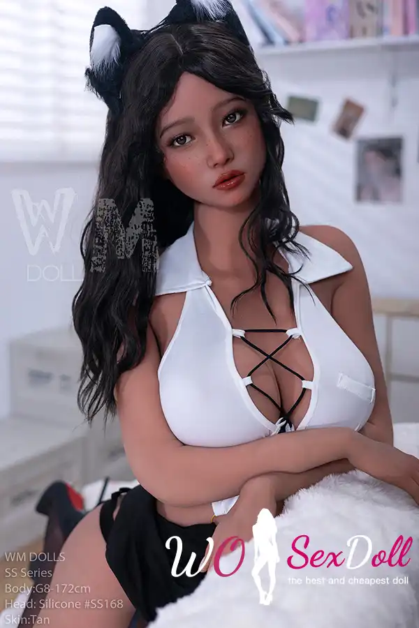 173cm 5ft5 Silicone Cat Girl Asian Busty Figure Black Hair Sex Doll #SS168 Head