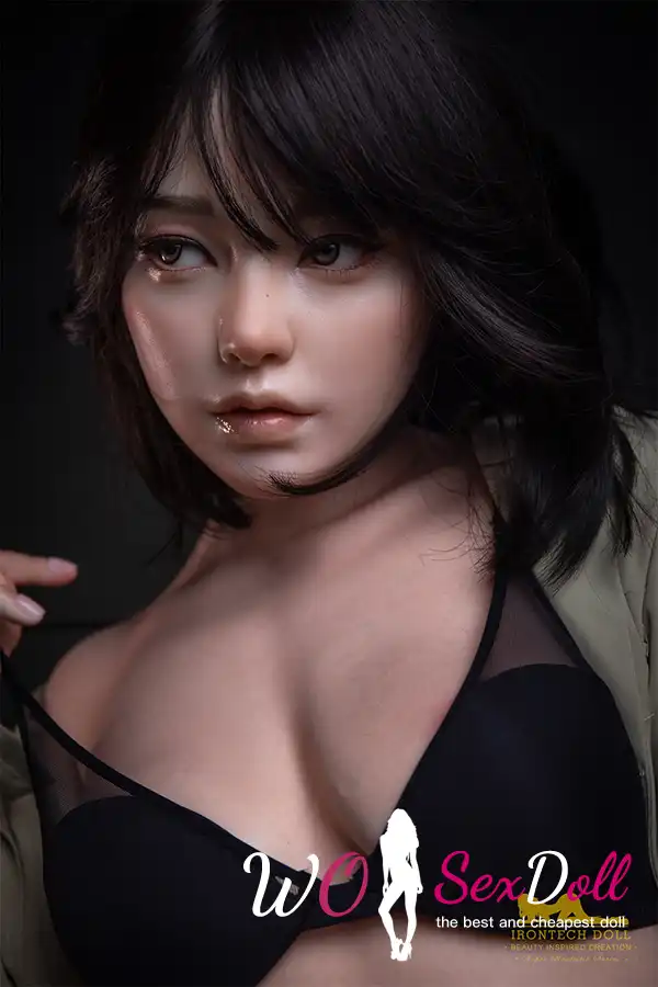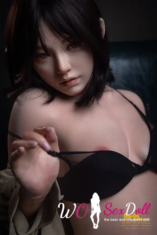 This silicone asian sweetie realistic sex doll e cup with delicate face, black lingerie and casual jacket. A seductive beauty full of mystery and irresistible charm.