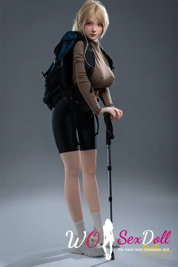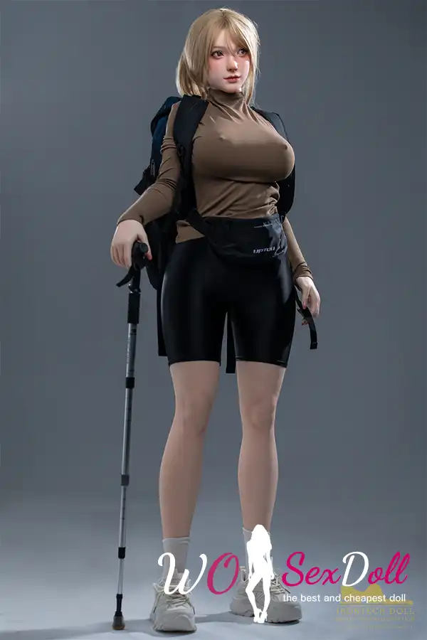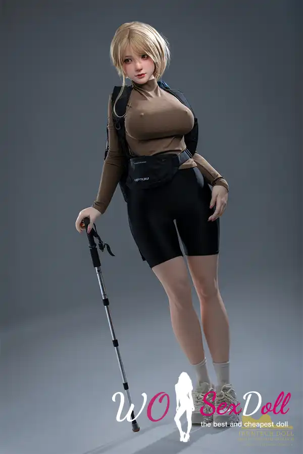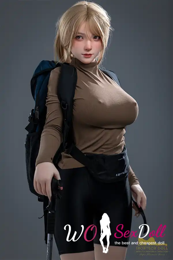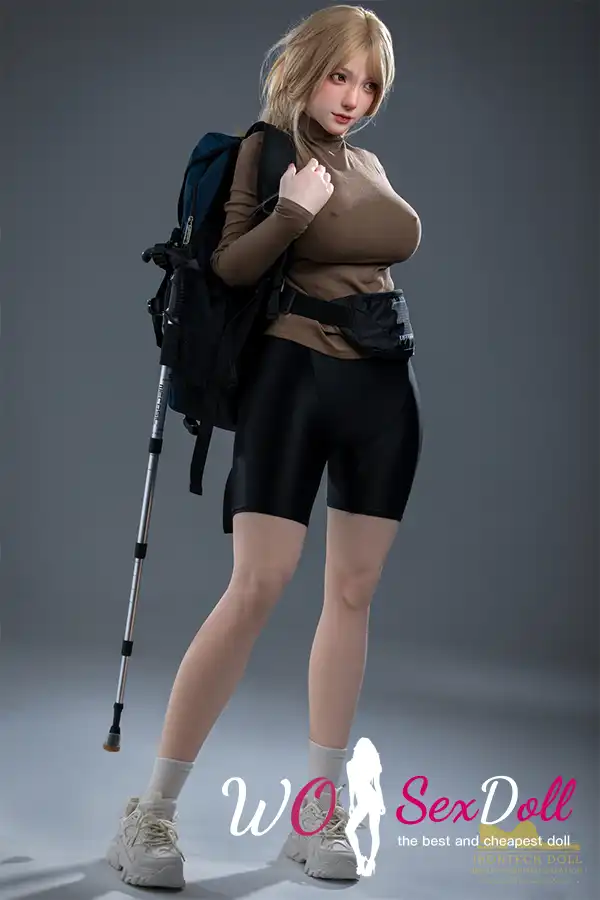 This silicone cute sporty outdoor sex doll f cup in sporty hiking gear with big boobs and curvy figure. Ideal for outdoor adventure roleplay fantasies.