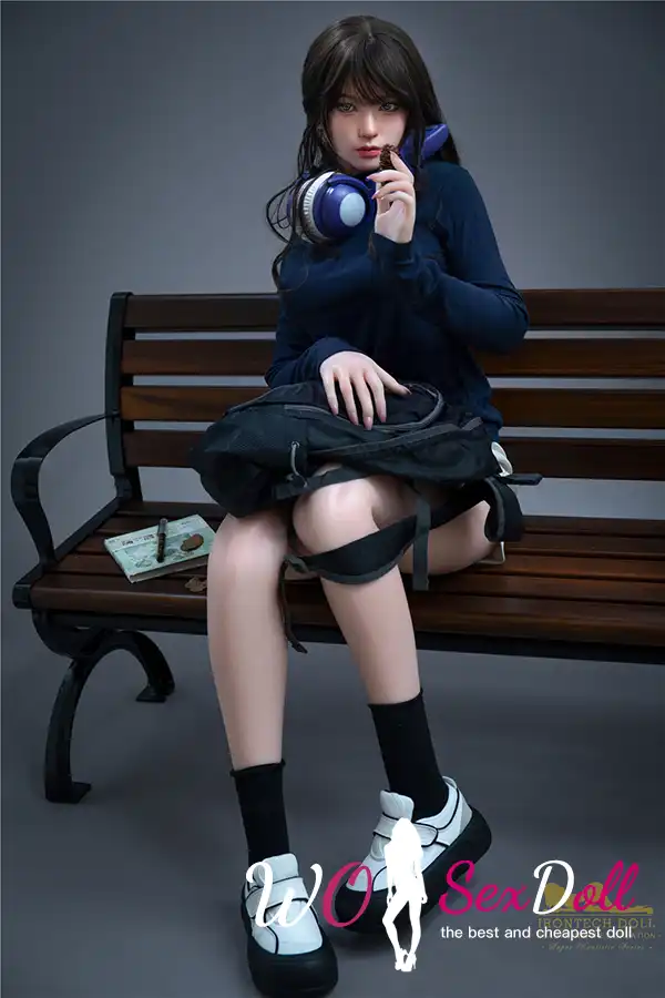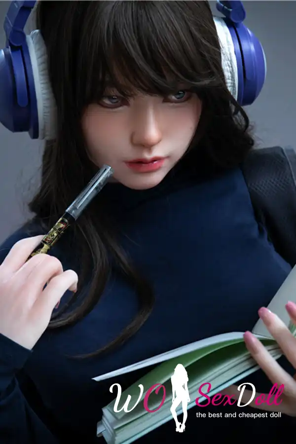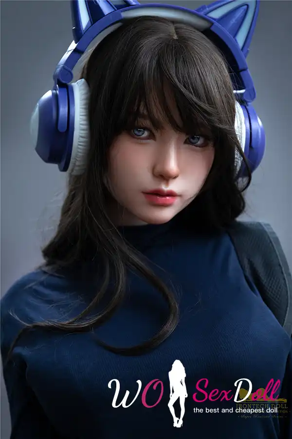 A silicone gamer girl cute anime style sex doll e cup with cat-ear headphones, navy sweater, and short skirt. She’s the perfect fantasy for gamers who love sweet, shy, and playful companions.