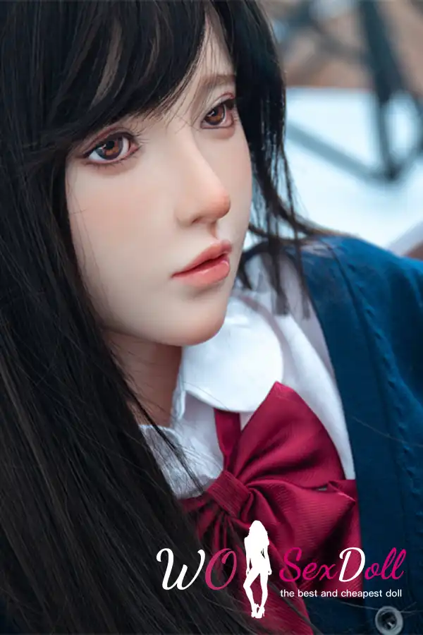 Experience a silicone japanese schoolgirl sex love doll c cup dressed in a navy uniform with a red ribbon. Her delicate features, smooth hair, and shy expression bring anime-inspired fantasy to life with realistic charm.