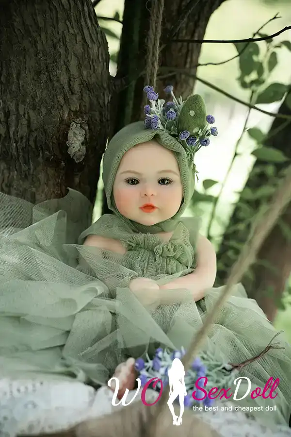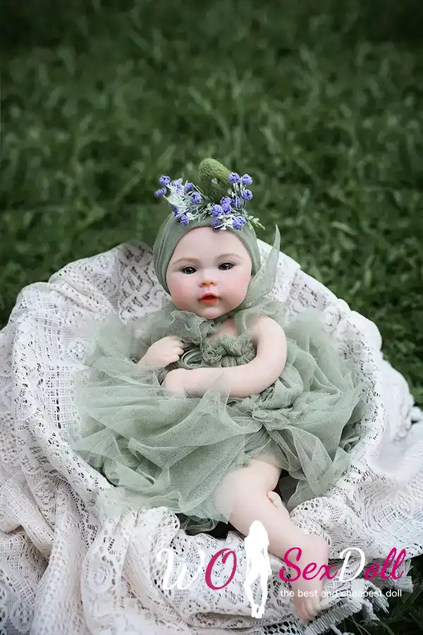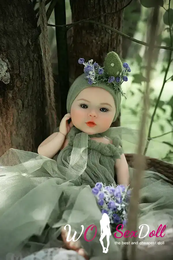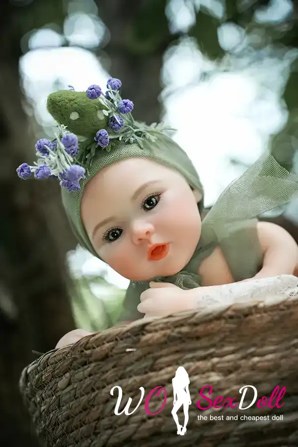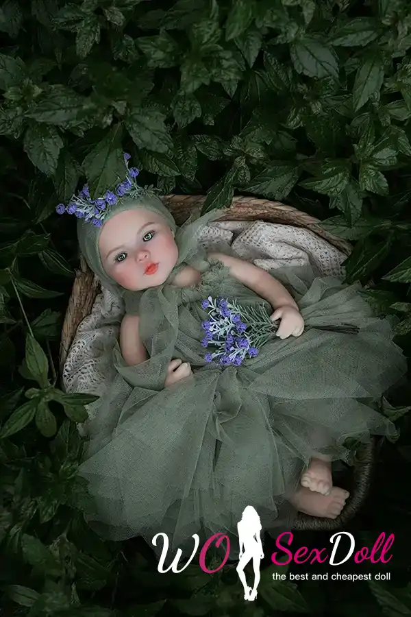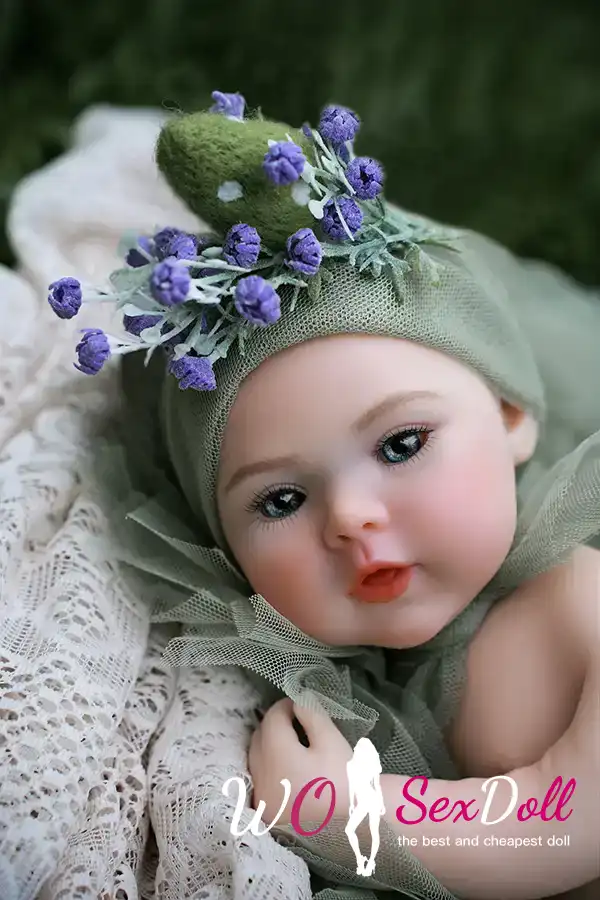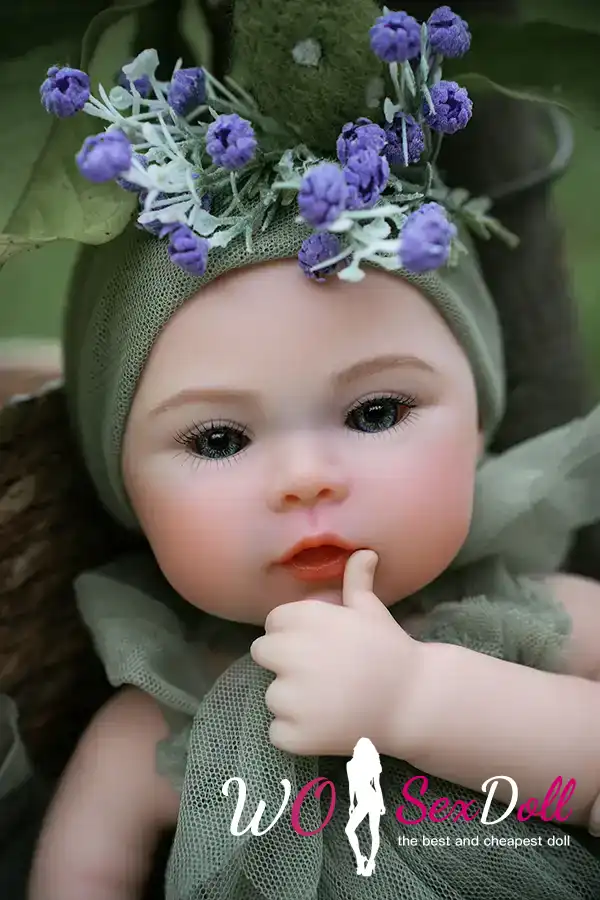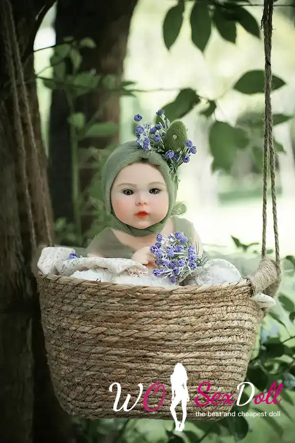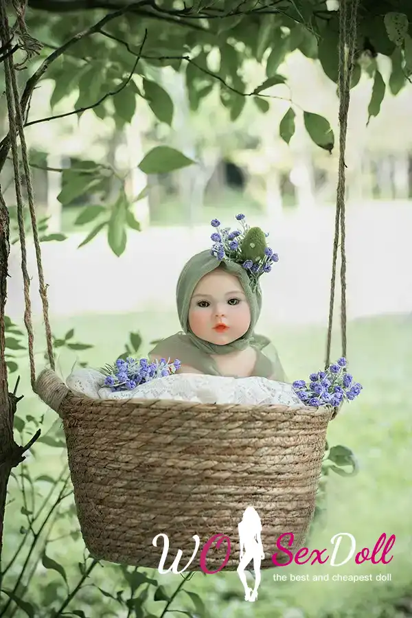 This Silicone Realistic Sweet Gentle Reborn Baby Doll looks angelic in her hanging basket, surrounded by soft flowers. Her realistic expression and gentle charm bring serenity and joy to any display.